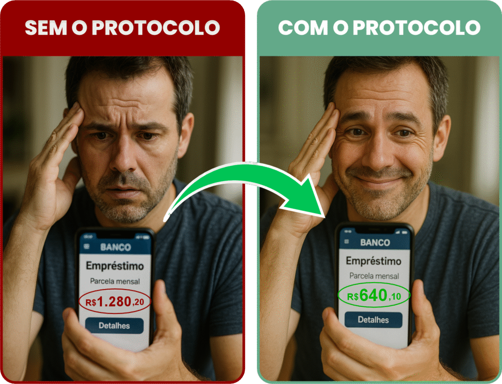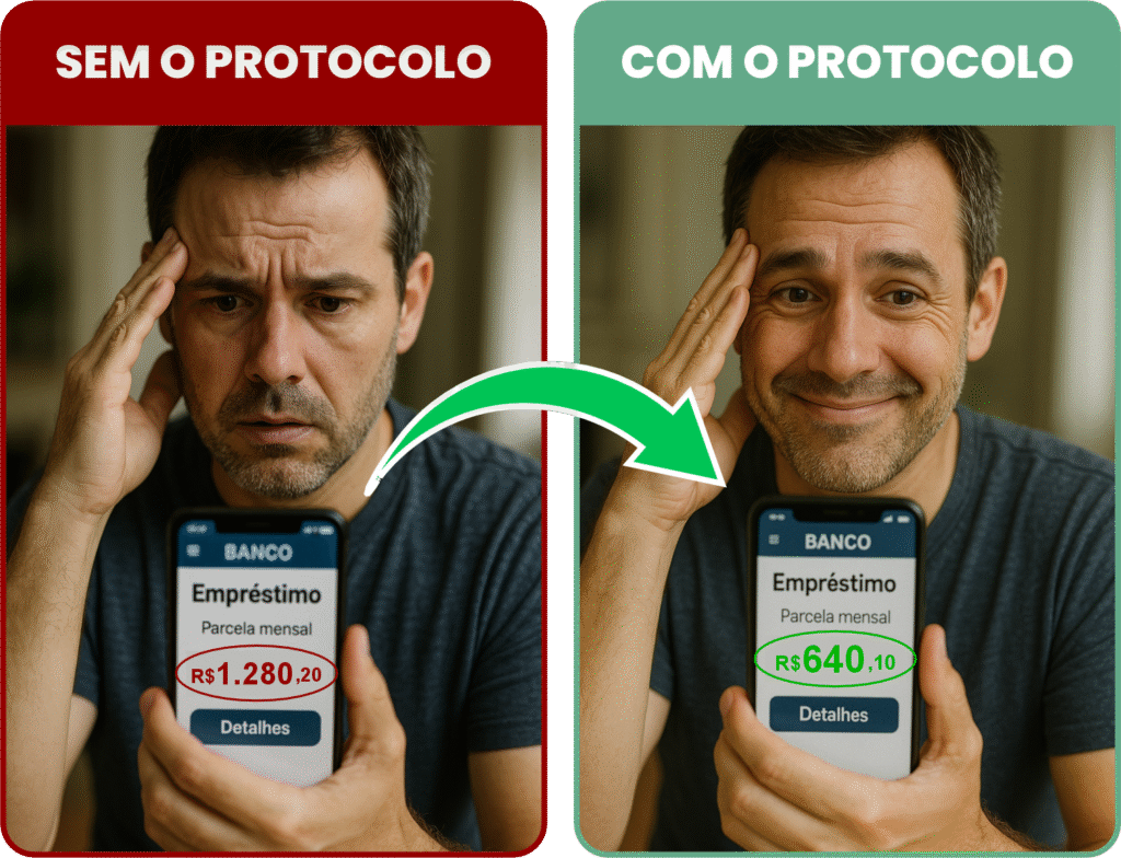 Esse método foi criado justamente pra ajudar pessoas como você a reduzirem o valor das parcelas em até 50%, e o melhor: sem precisar esperar meses pra ver resultado. Dá pra diminuir suas parcelas já no próximo mês.